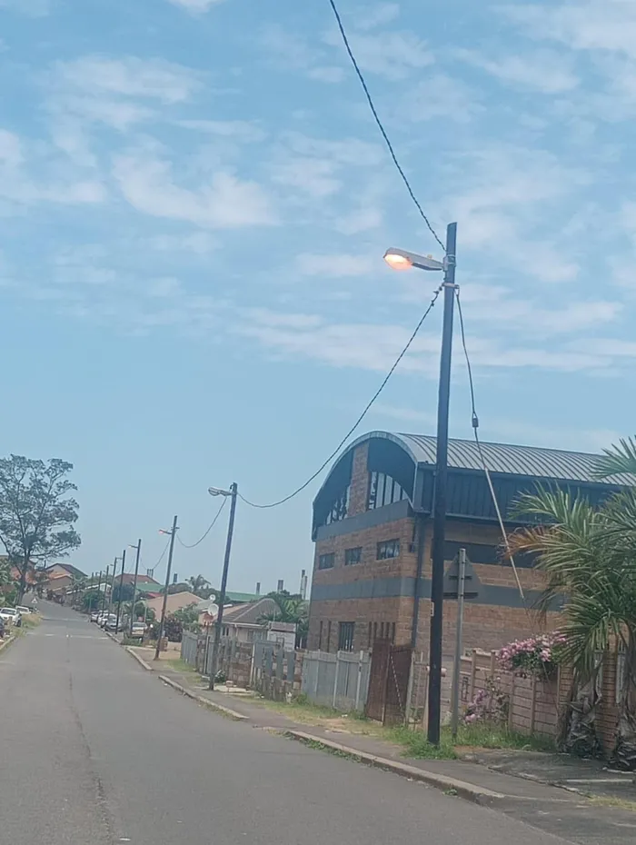Streetlights on during the day in a road in ward 68.