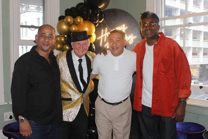 Jody Abrahams, David ramer, Alistair Izobell and Loukmaan Adams at Izobell's 50th birthday celebrations