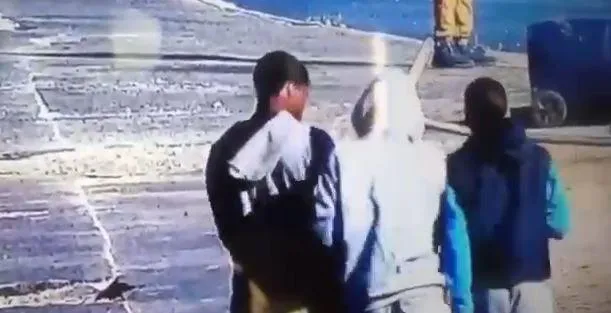 The driver immediately exits the vehicle and attempts to chase the boys away, at one point moving between the back and the front of the car in an effort to shield it from further damage. One of the boys runs in front of the vehicle, seemingly undeterred, while another is seen fleeing across the road with an object in his hand.
