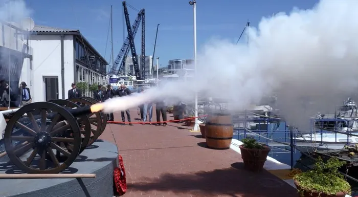 The Royal Cape Yacht Club held their Armistice Day Remembrance Parade at the Royal Cape Yacht Club on Tuesday. David Garrard, Commodore of the Royal Cape Yacht Club and Vice -Commodore Lynette Finlay laid wreaths and setting off a canon to commemorate the end of World War 1 when the armistice (ceasefire agreement) was signed between the Allies and Germany on 11 November 1918 at 11am - "the eleventh hour of the eleventh day of the eleventh month".