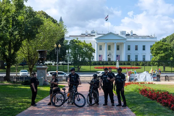 Secret Service Police are seen in Lafayette Park near the White House on July 4, 2023, in Washington, DC. Picture: Tasos Katopodis/Getty Images/AFP Secret Service Police are seen in Lafayette Park near the White House on July 4, 2023, in Washington, DC. Picture: Tasos Katopodis/Getty Images/AFP