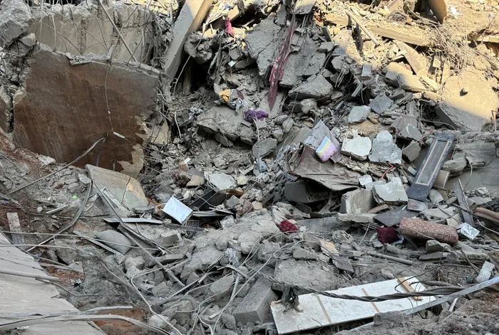 A view shows the damage at the site of the Israeli airstrike that killed at least 21 people. Picture: Reuters